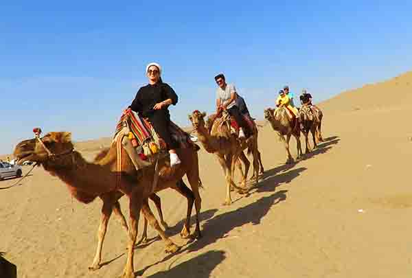 با رسیدن به منطقهی کویری، منظرهی تپههای نرم شنی و آسمان بیانتها، خستگی مسیر را از یادمان میبرد. اینجا سکوت، حرف اول را میزند. نسیمی آرام میوزد و تنها صدای پا روی شن، موسیقی لحظههاست.