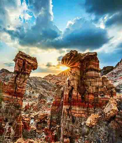 One of the most spectacular salt domes in the world, Jashak dazzles with white valleys, salt waterfalls, and crystal formations glowing under the sun. Walking through Crystal Canyon and seeing pink and silver salt layers feels like exploring another planet.